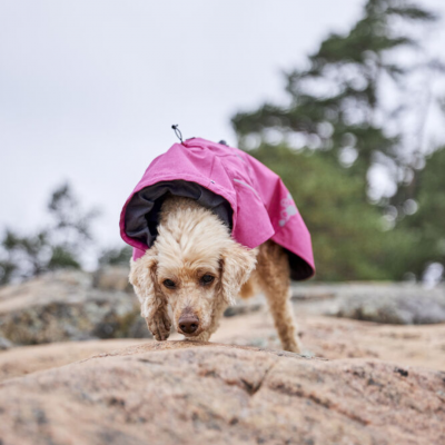 Metoda de dimensionare exclusiva Hurtta garanteaza o potrivire perfecta pentru majoritatea raselor. Haina de ploaie este, de asemenea, conceputa pentru suprapunere, ceea ce o face un must-have pentru vreme umeda, vantoasa si imprevizibila.