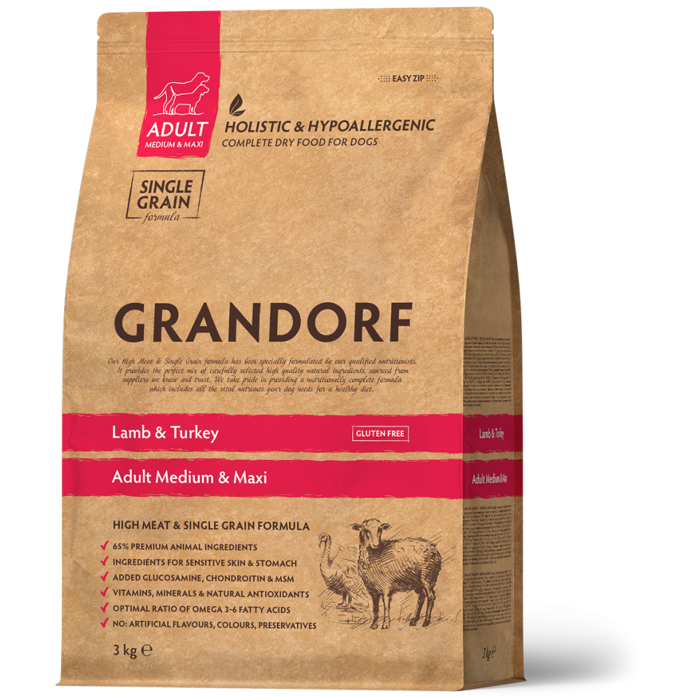 Grandorf Lamb & Turkey Medium & Maxi Breeds este o hrană completă, naturală și echilibrată, formulată special pentru câinii adulți de talie medie și mare. Rețeta conține carne proaspătă de miel și curcan – surse de proteine de înaltă calitate, ușor digerabile și bogate în aminoacizi esențiali.