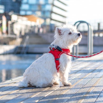 Bretelele ajustabile, banda cu scai Velcro generoasa si forma 3D se adapteaza corpului patrupedului si va garanteaza plimbari in siguranta.