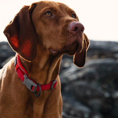 Materialul de la suprafata produsului este confectionat din poliester moale imbunatatit cu o laminare Houndtex rezistenta la intemperii. Plasa respirabila din captuseala nu permite frecarea si nu supra-incalzeste cainele. Tesaturile sunt sigure si nu contin substante nocive in conformitate cu standardul Öko-Tex. In interiorul gulerului exista o zona pentru a insera informatiile de contact ale proprietarului.