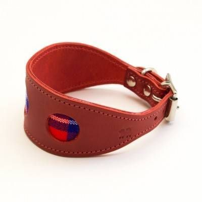 Aceste zgarzi de lux Hiro + Wolf pentru Ogar englez si Whippet sunt facute de mana din piele groasa. Au un design unic, circular, taiat prin laser care scoate in evidenta patura moale Masai Shuka.